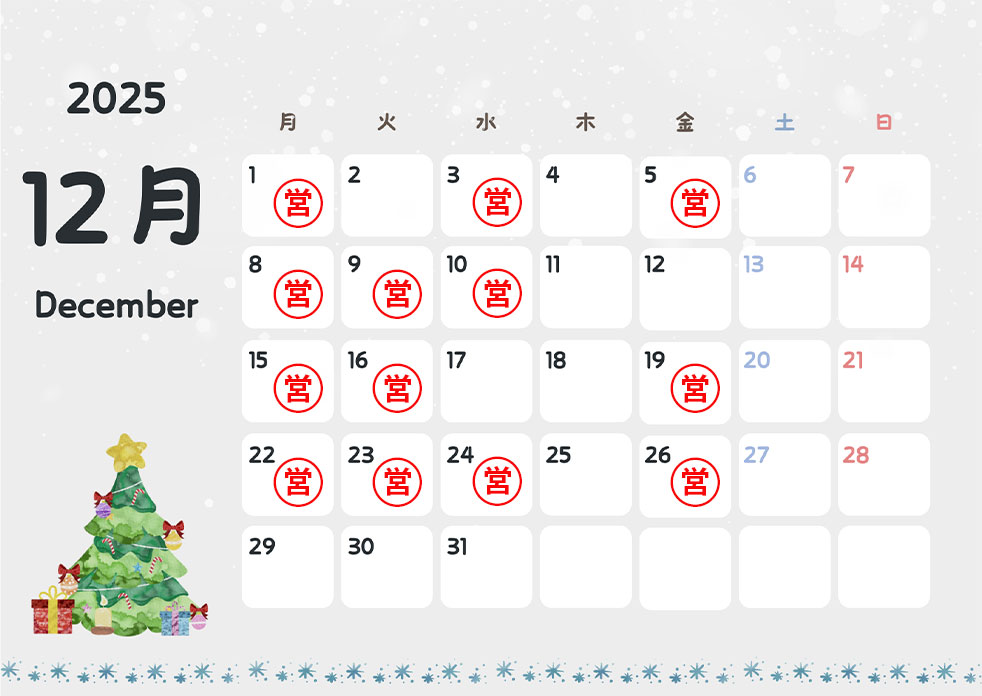 【2025年12月】大阪実店舗営業日のお知らせ